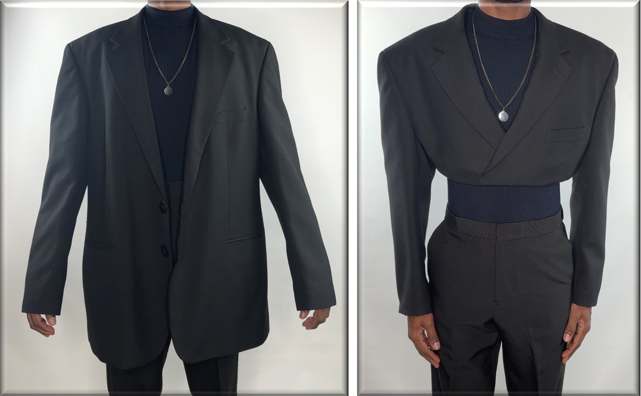 Alteration & Redesign - A suit jacket reimagined as a throwback to the 80s boxy shoulders look